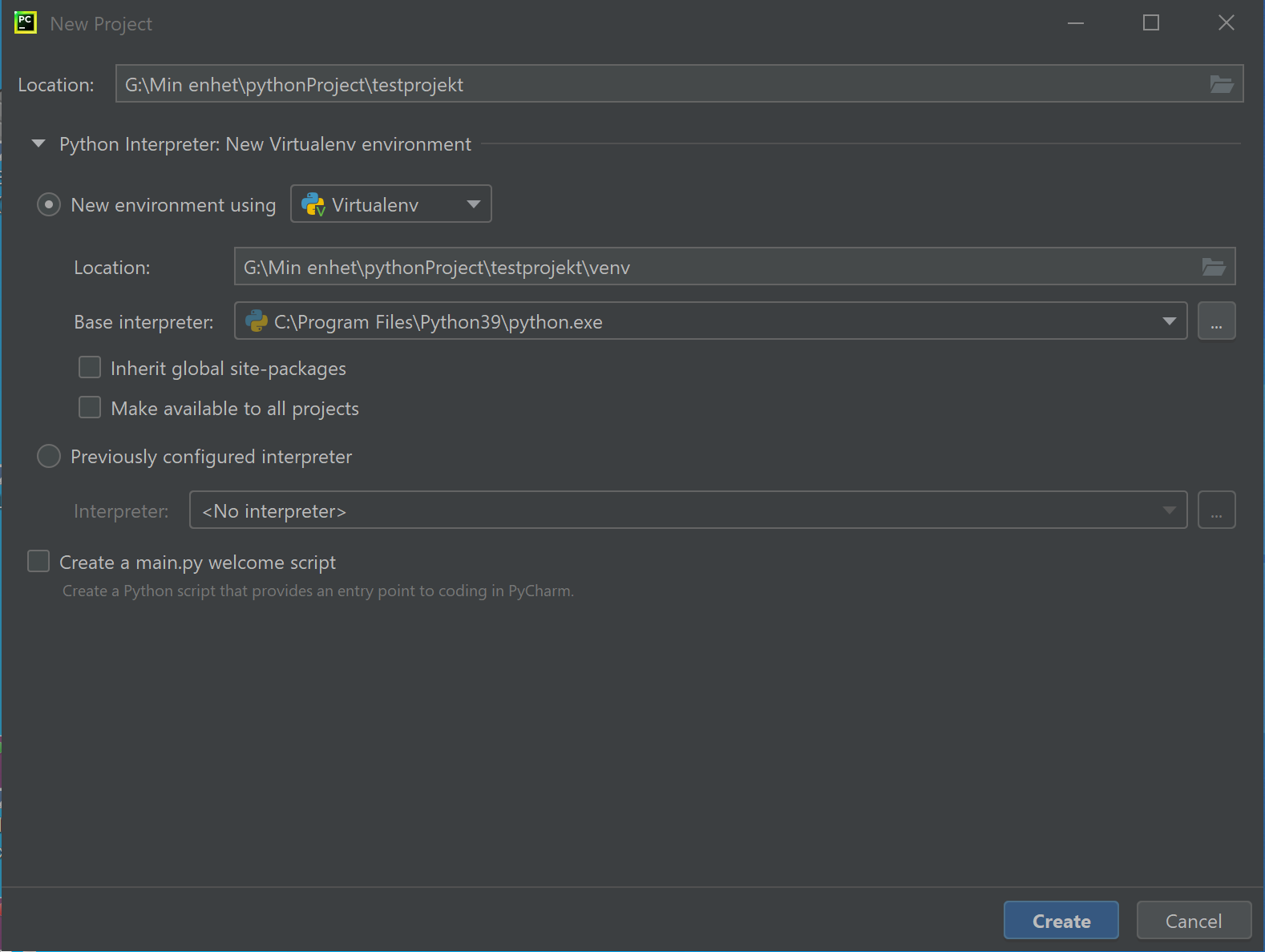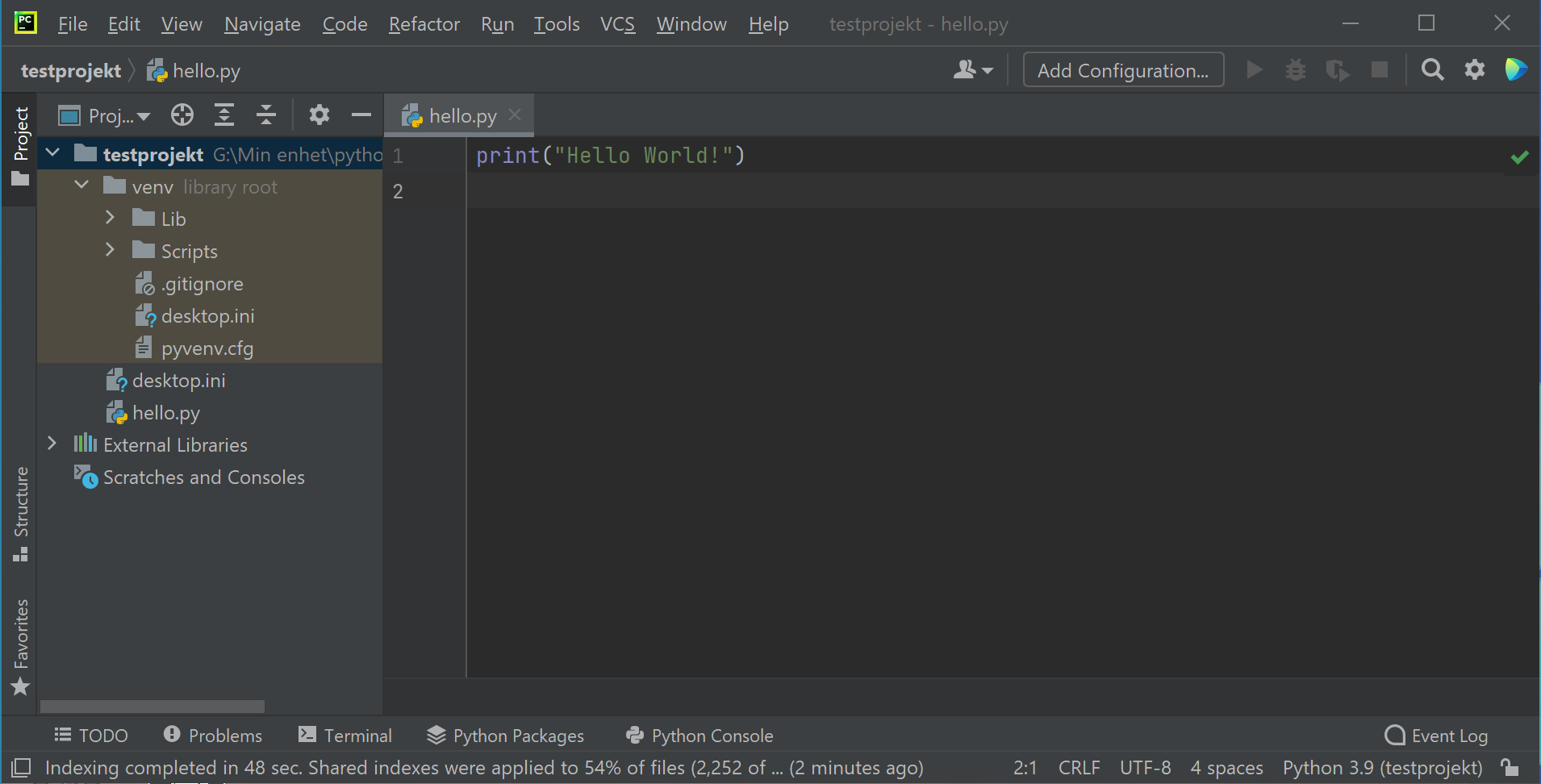 Skapa projekt i PyCharm