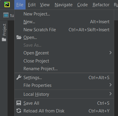 I tidigare versioner av PyCharm så fanns det fler inställningar som var kopplade till själva applikationen, numera ligger de flesta inställningar inne i varje projekt.