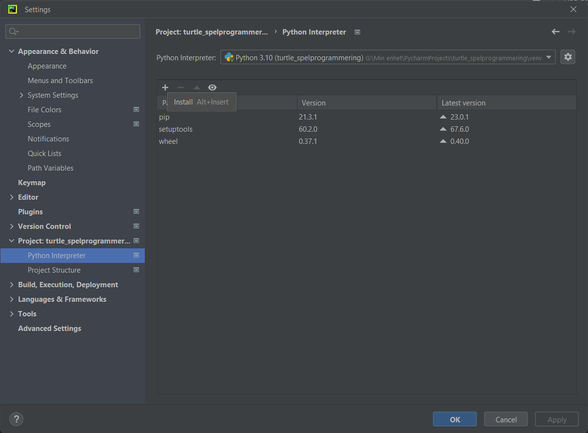 Importera paket till PyCharm i Windowsmiljö, 3/3