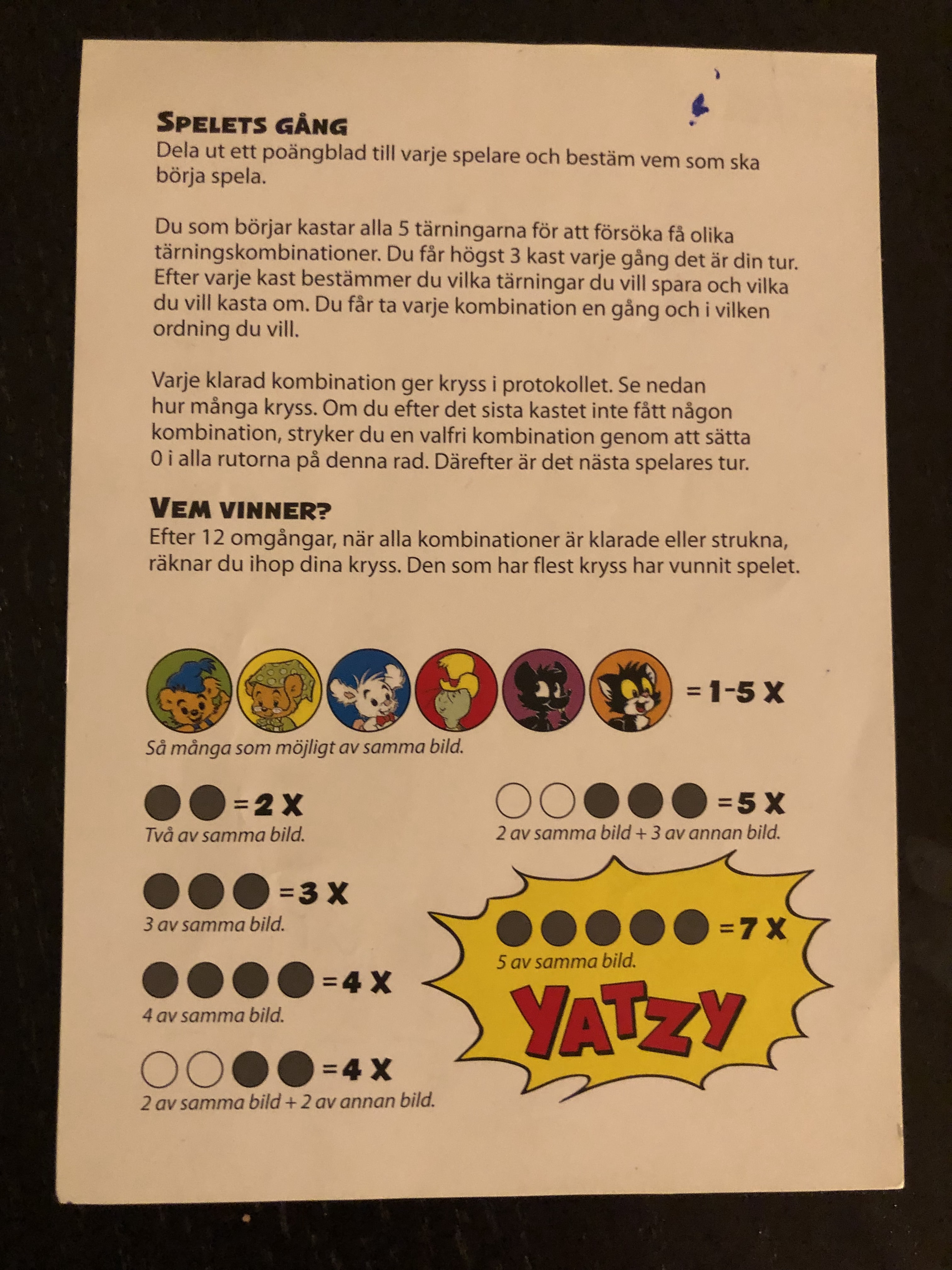 Här kommer en extrauppgift som du har möjlighet att bygga på hur långt du vill. Yatzy är ett klassiskt spel med fem tärningar, klassisk tärning 1-6, där det gäller att samla poäng genom att samla på olika serier av tärningsslag.